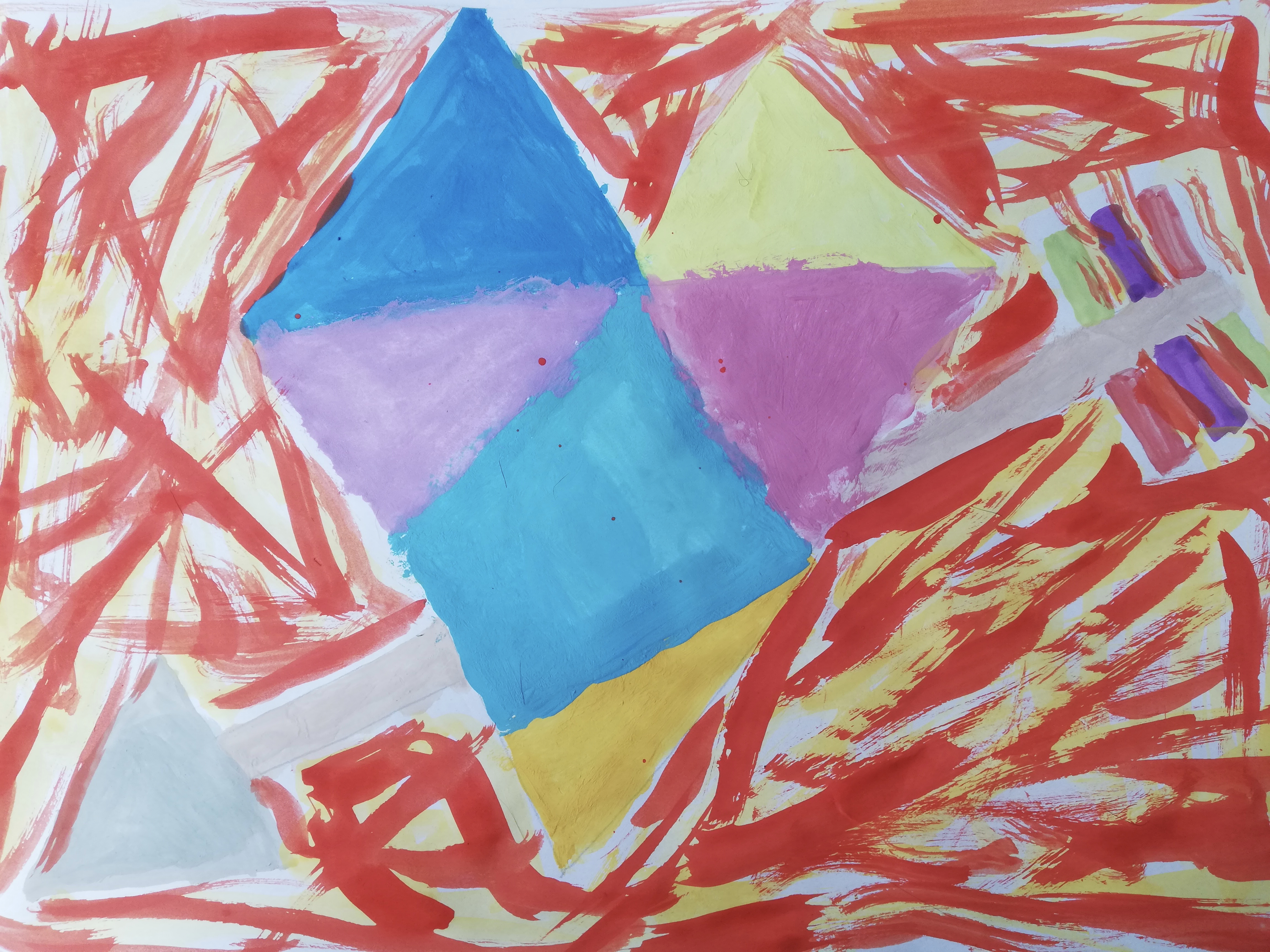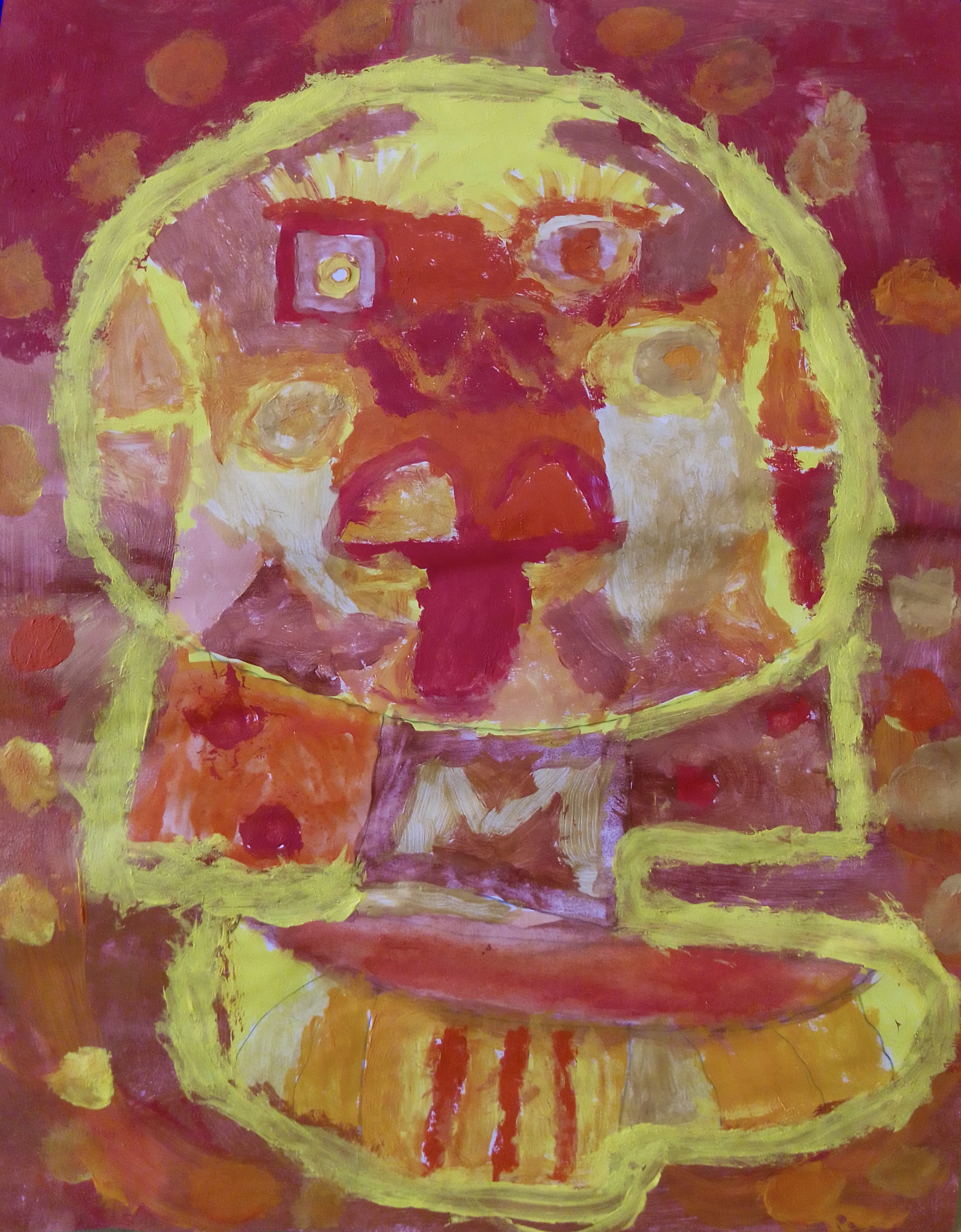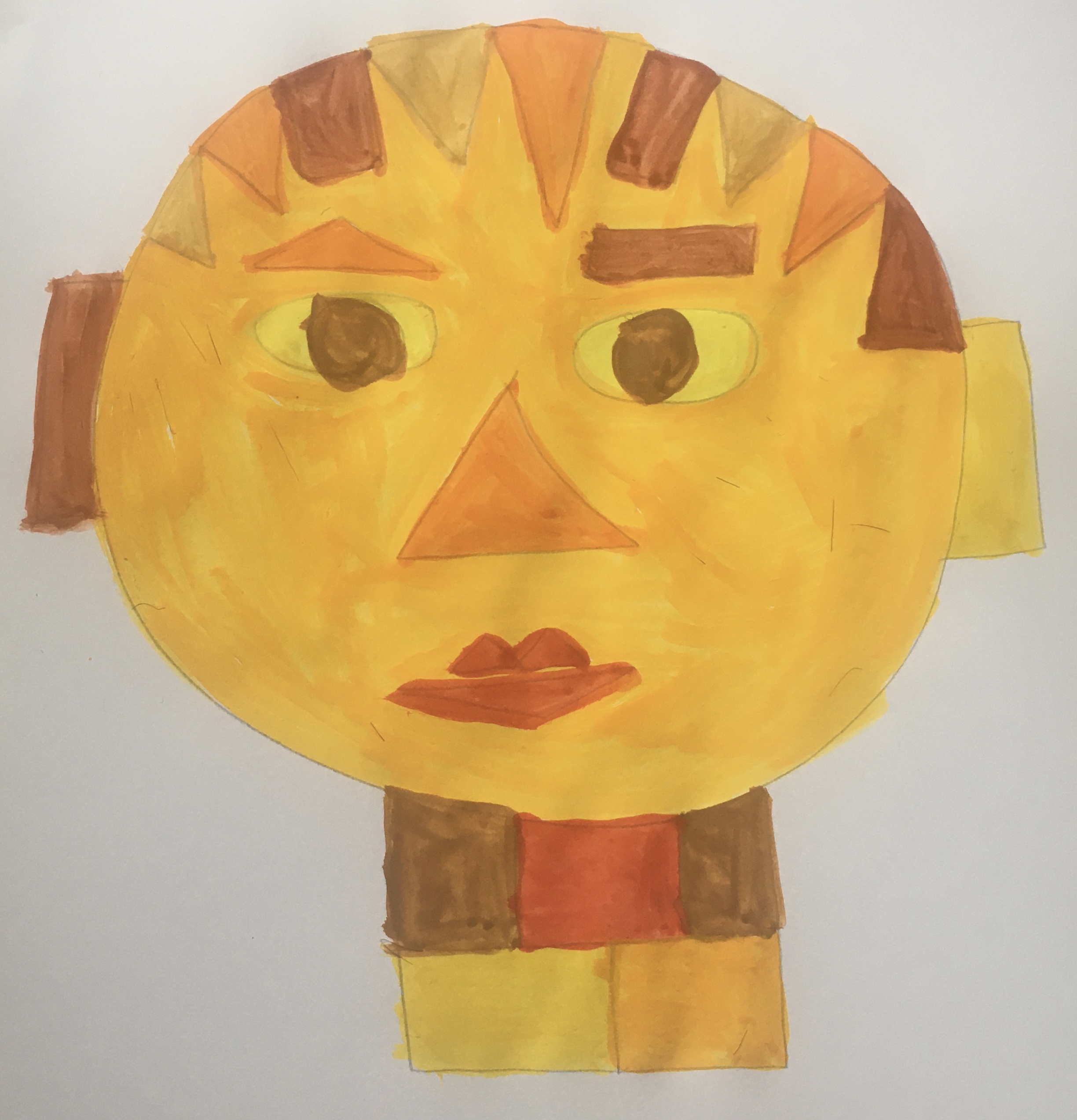 "Porträts mit geometrischen Formen und warmen Farben - nach dem Bild "Senecio" von Paul Klee"
