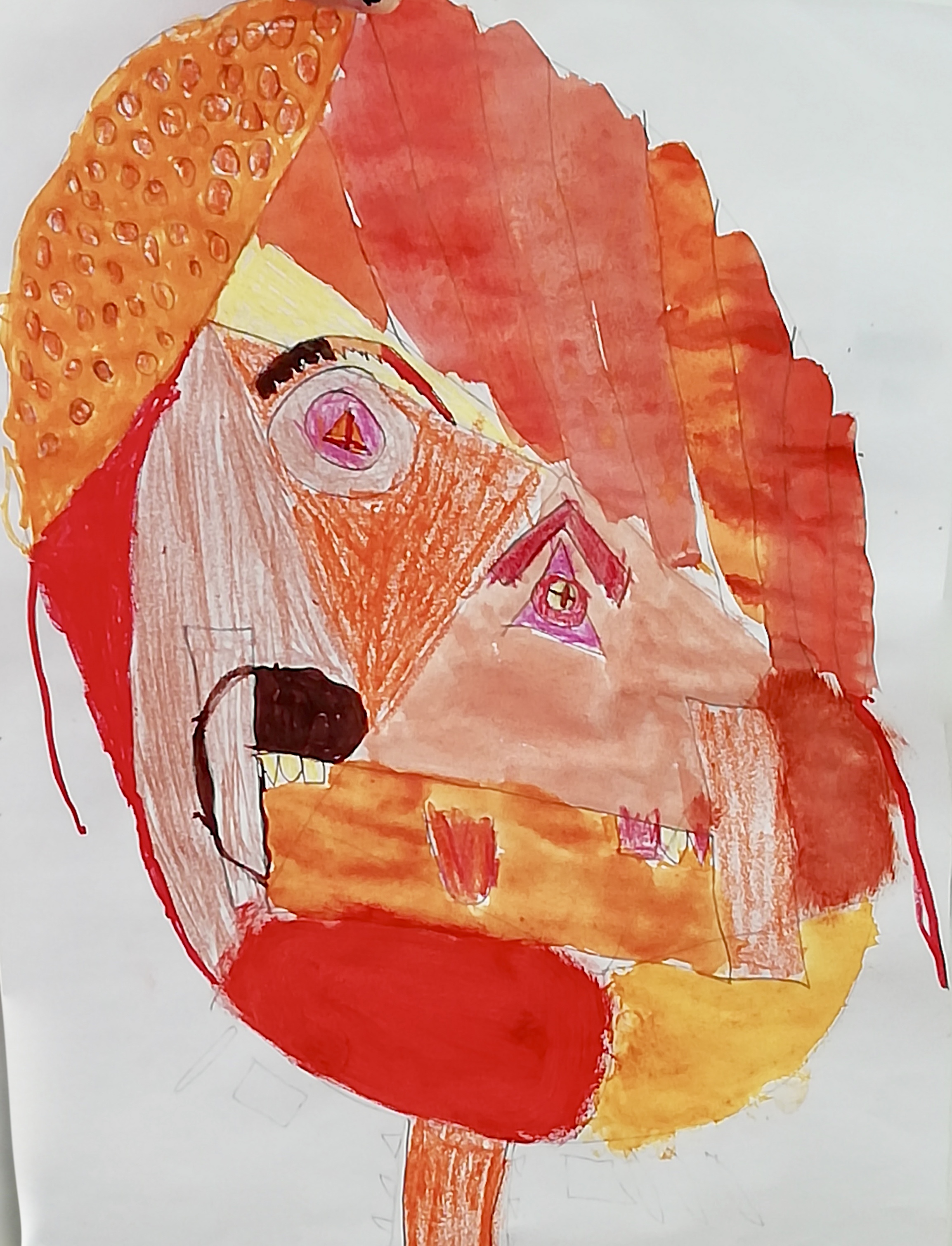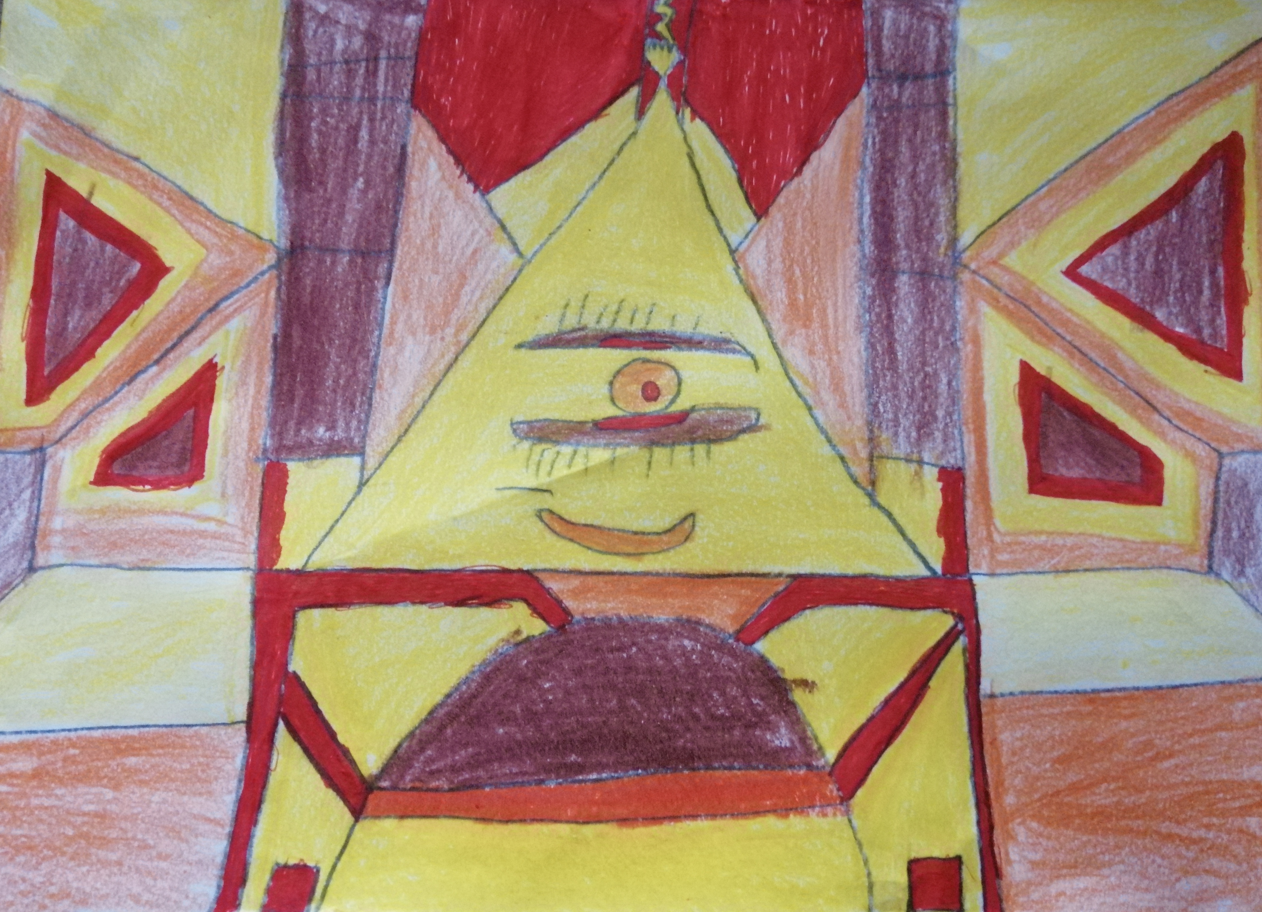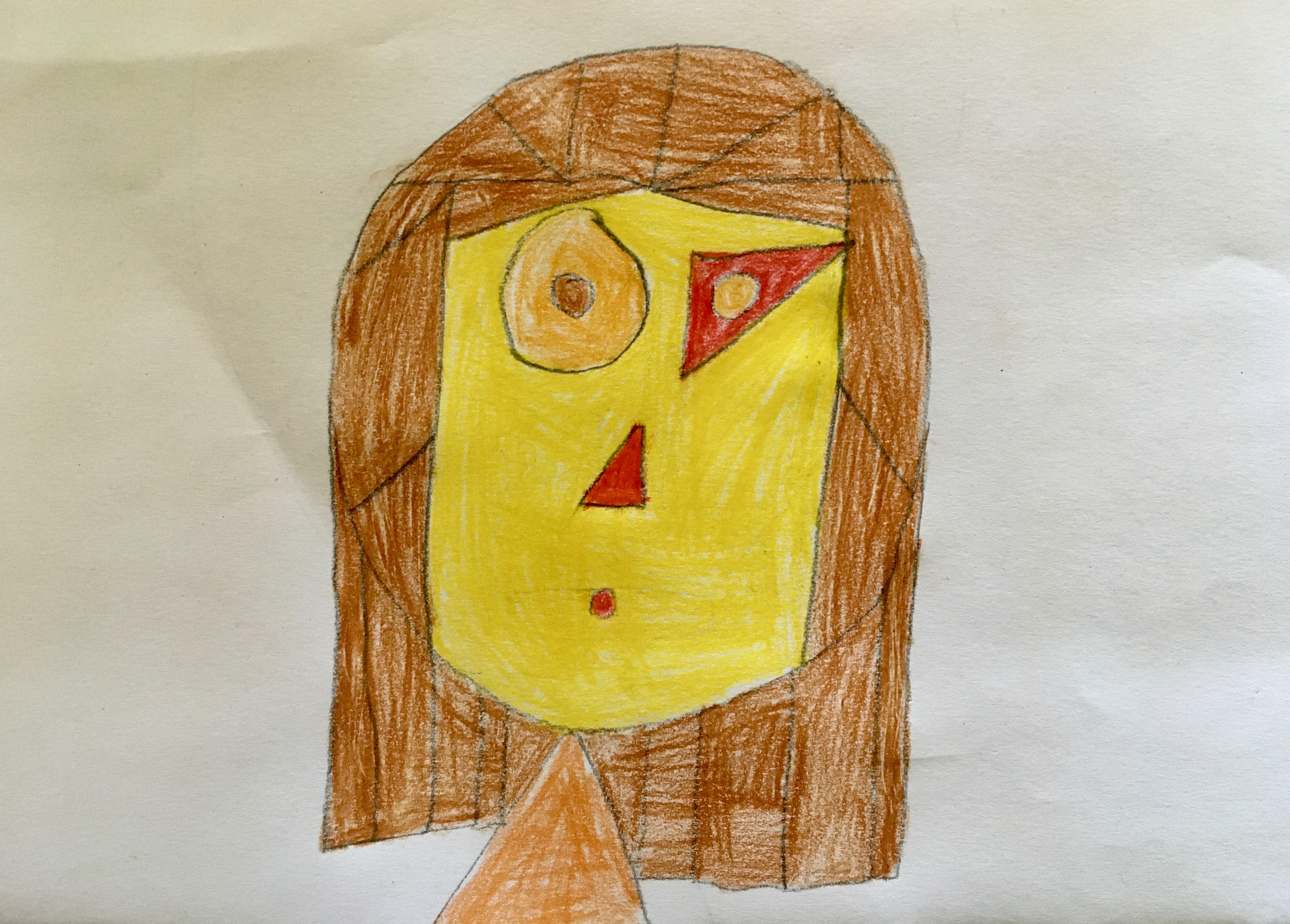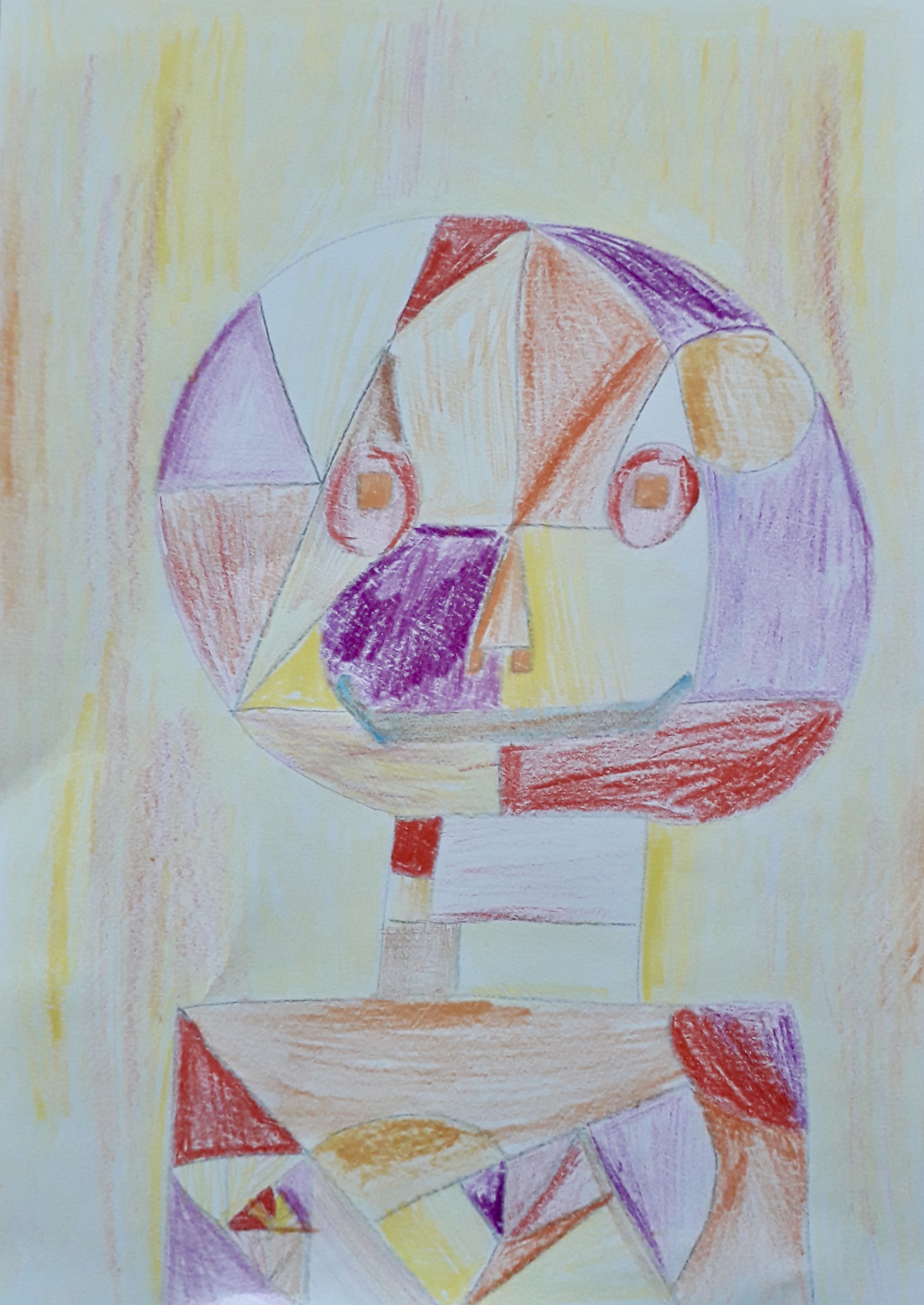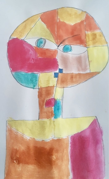 "Porträts mit geometrischen Formen und warmen Farben - nach dem Bild "Senecio" von Paul Klee"