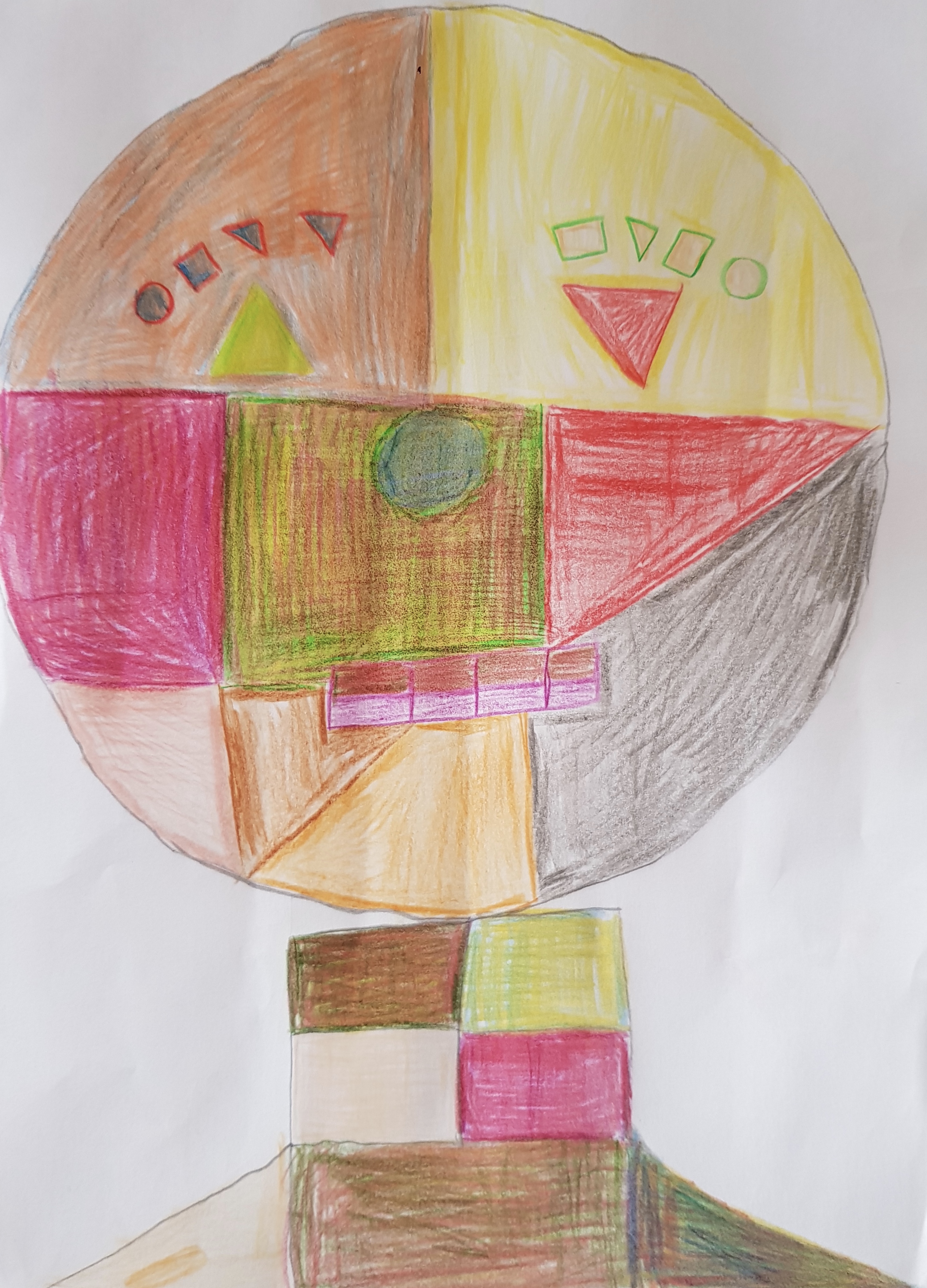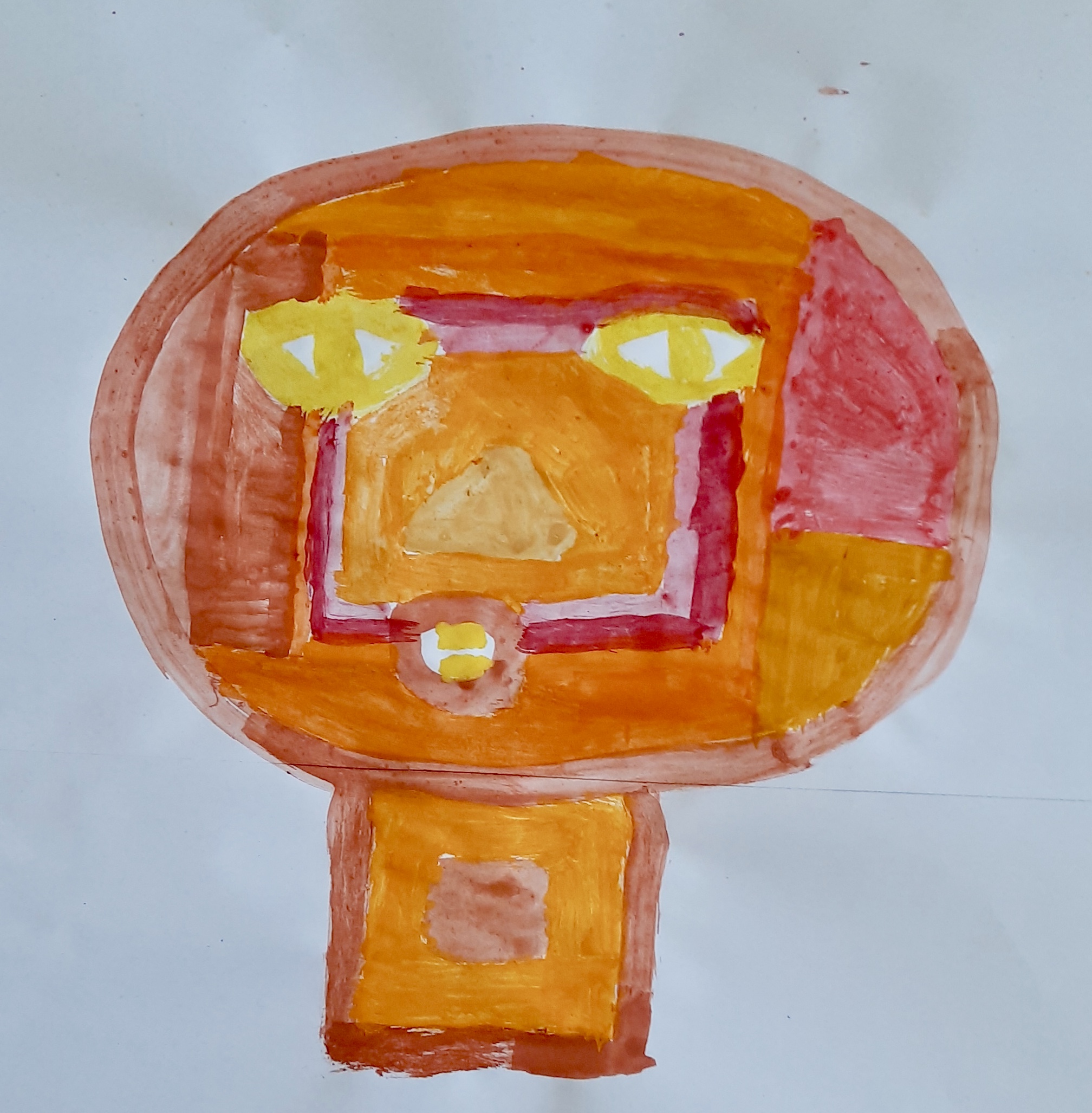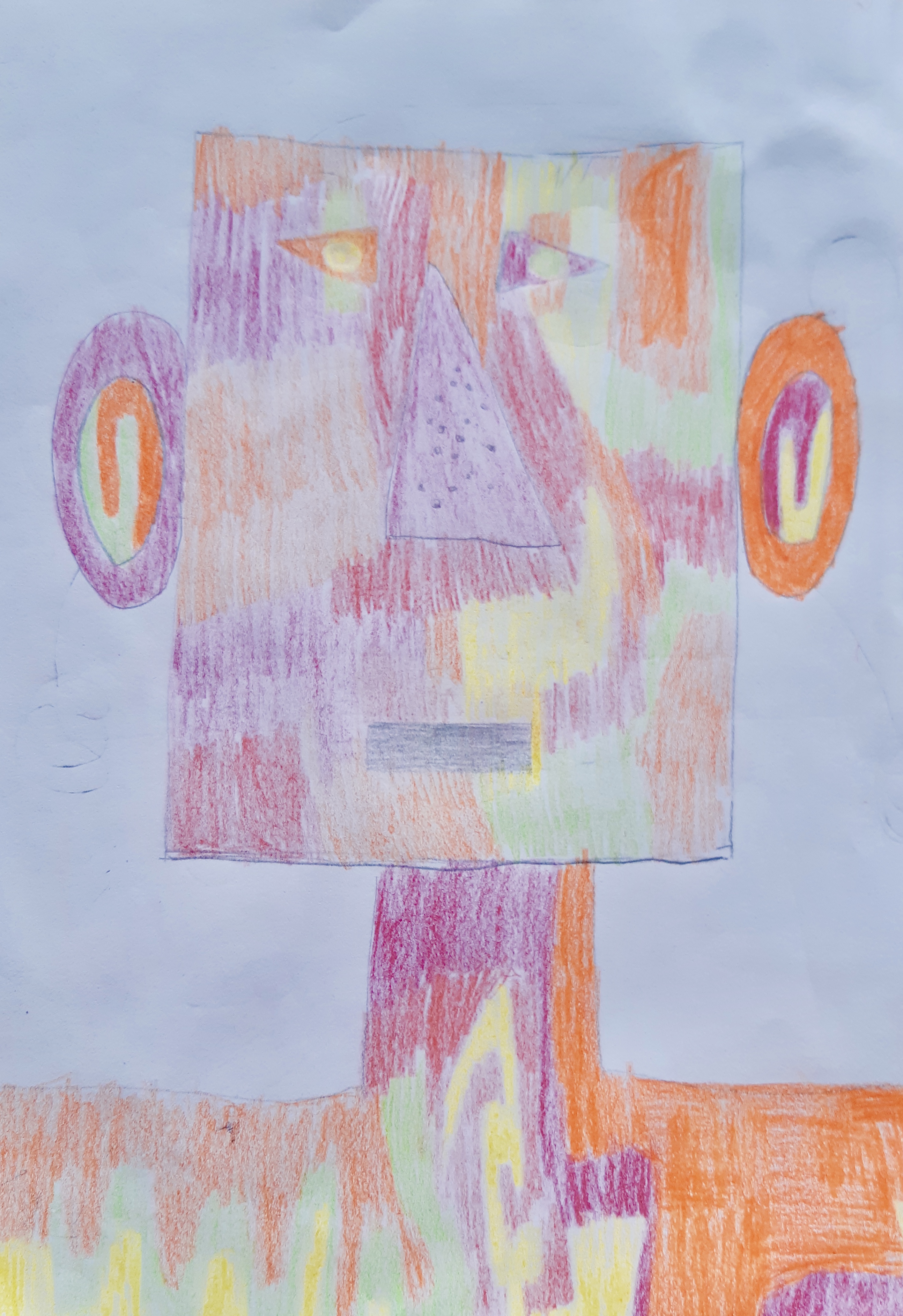 "Porträts mit geometrischen Formen und warmen Farben - nach dem Bild "Senecio" von Paul Klee"