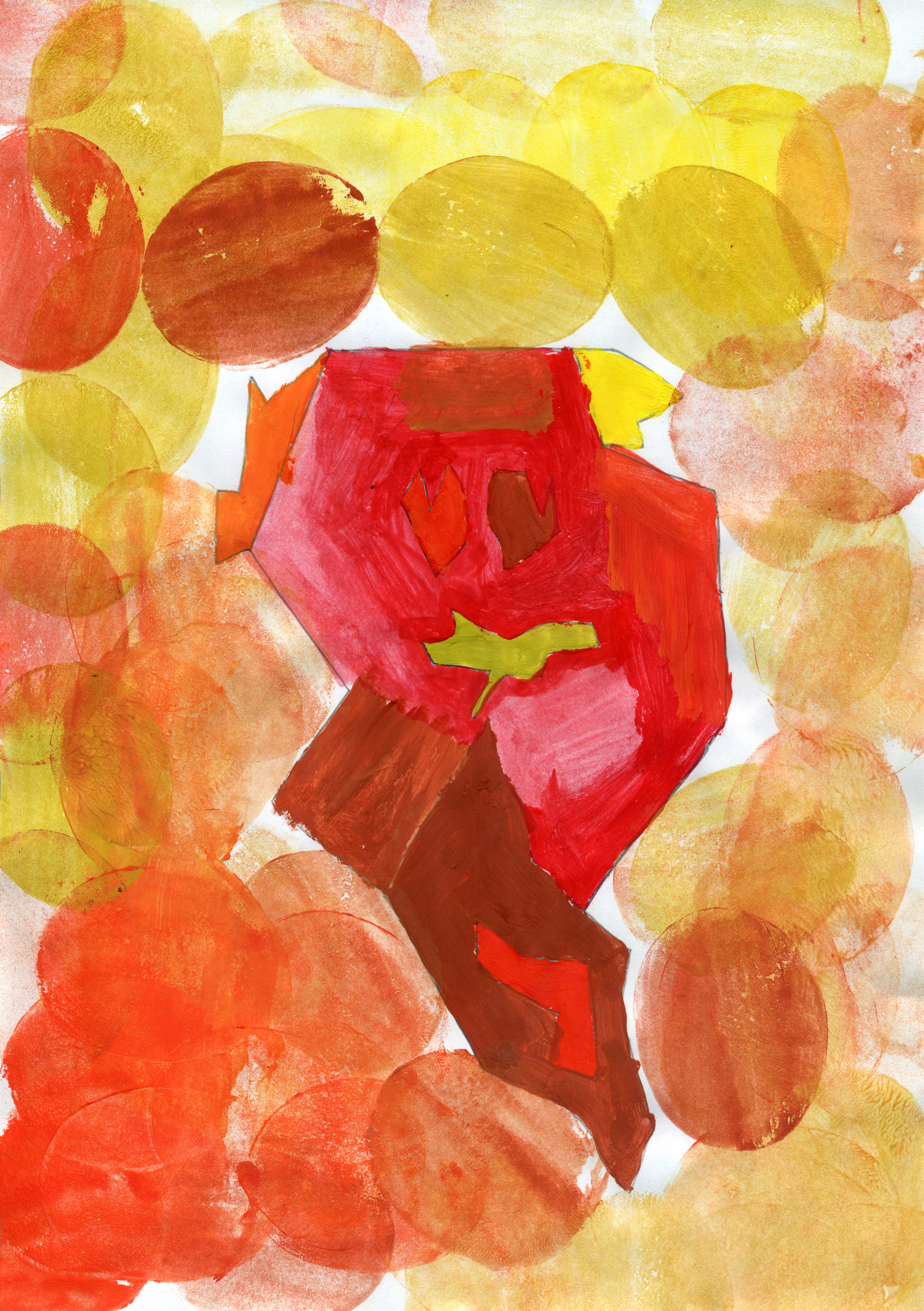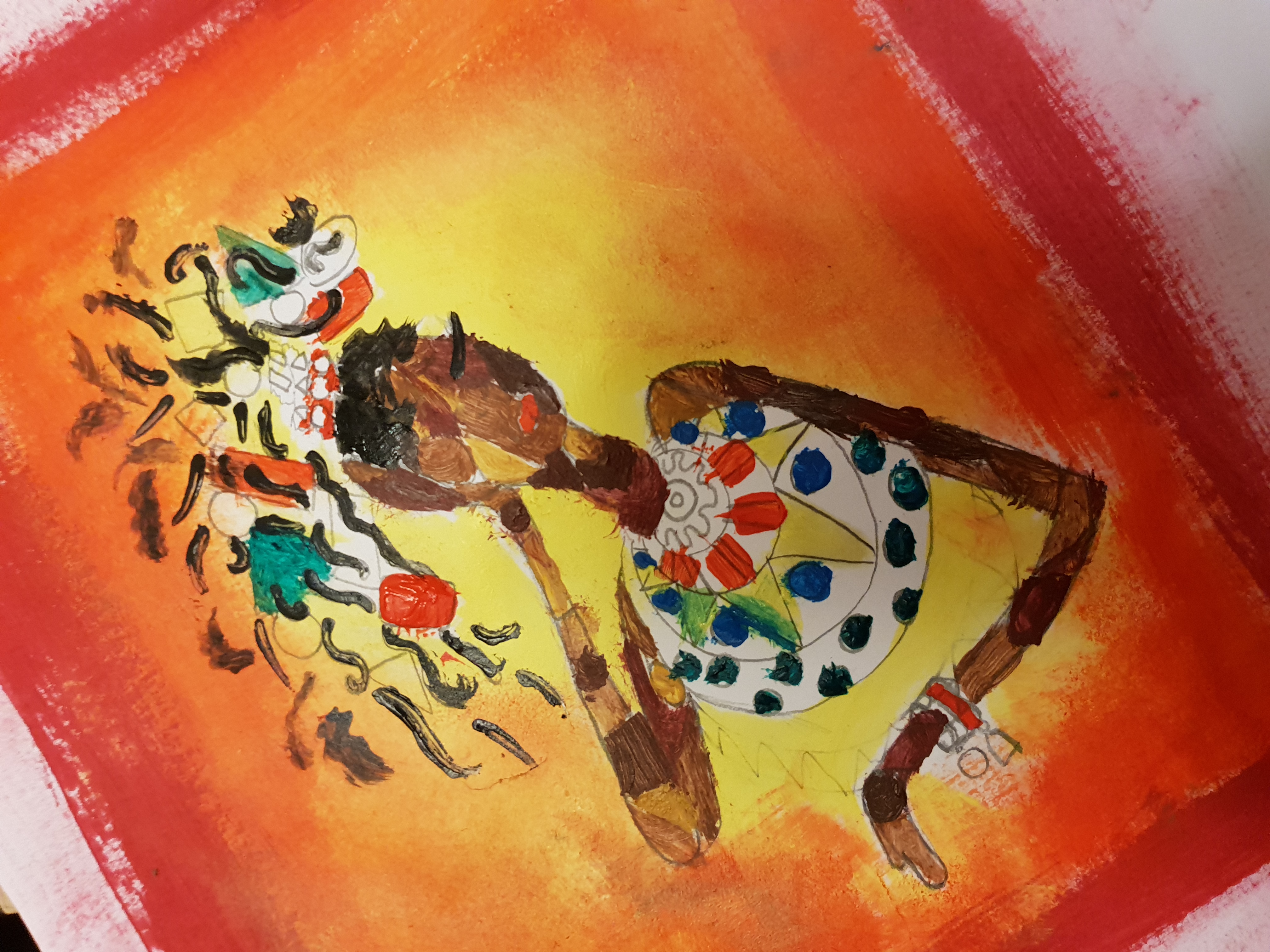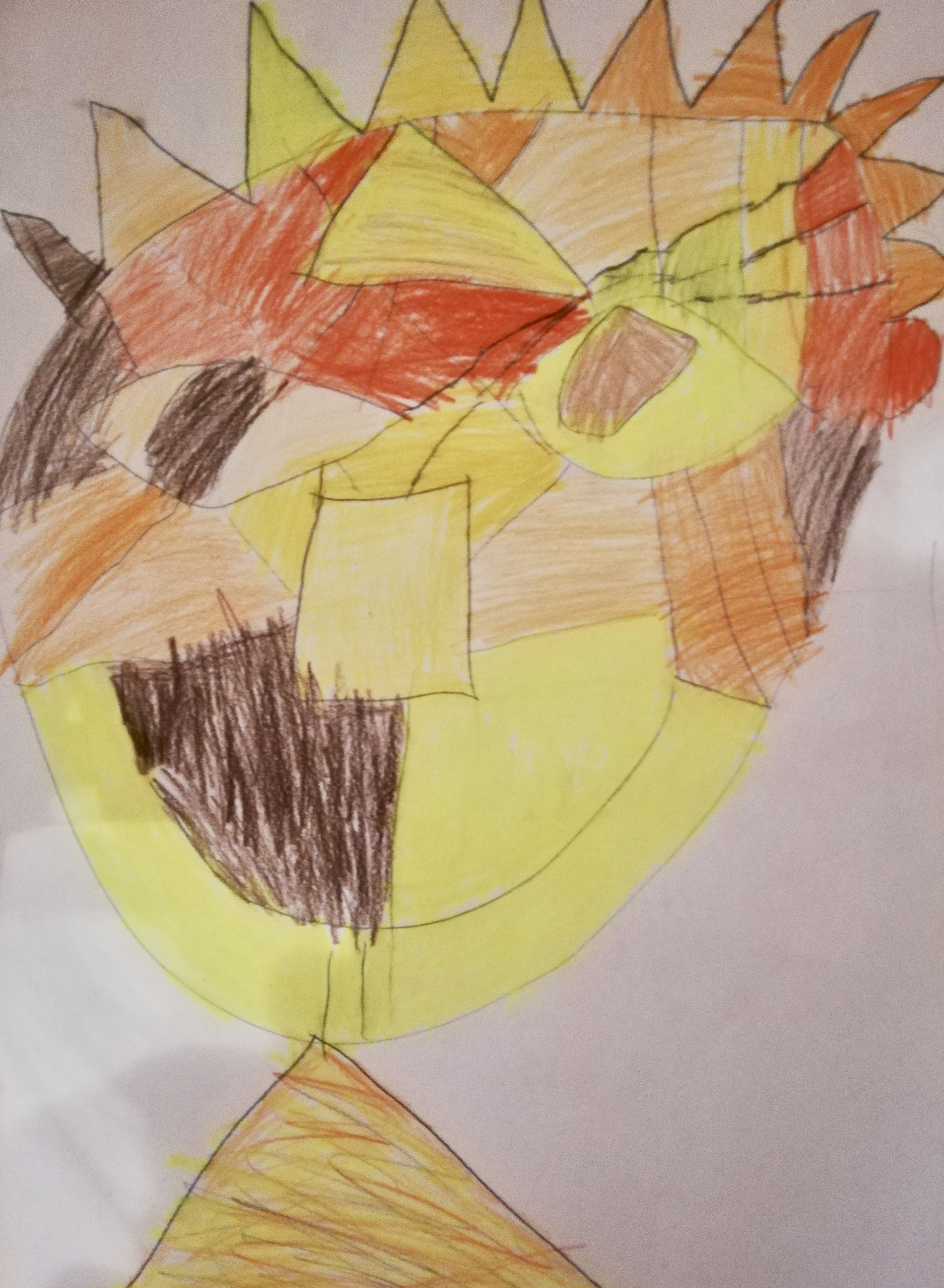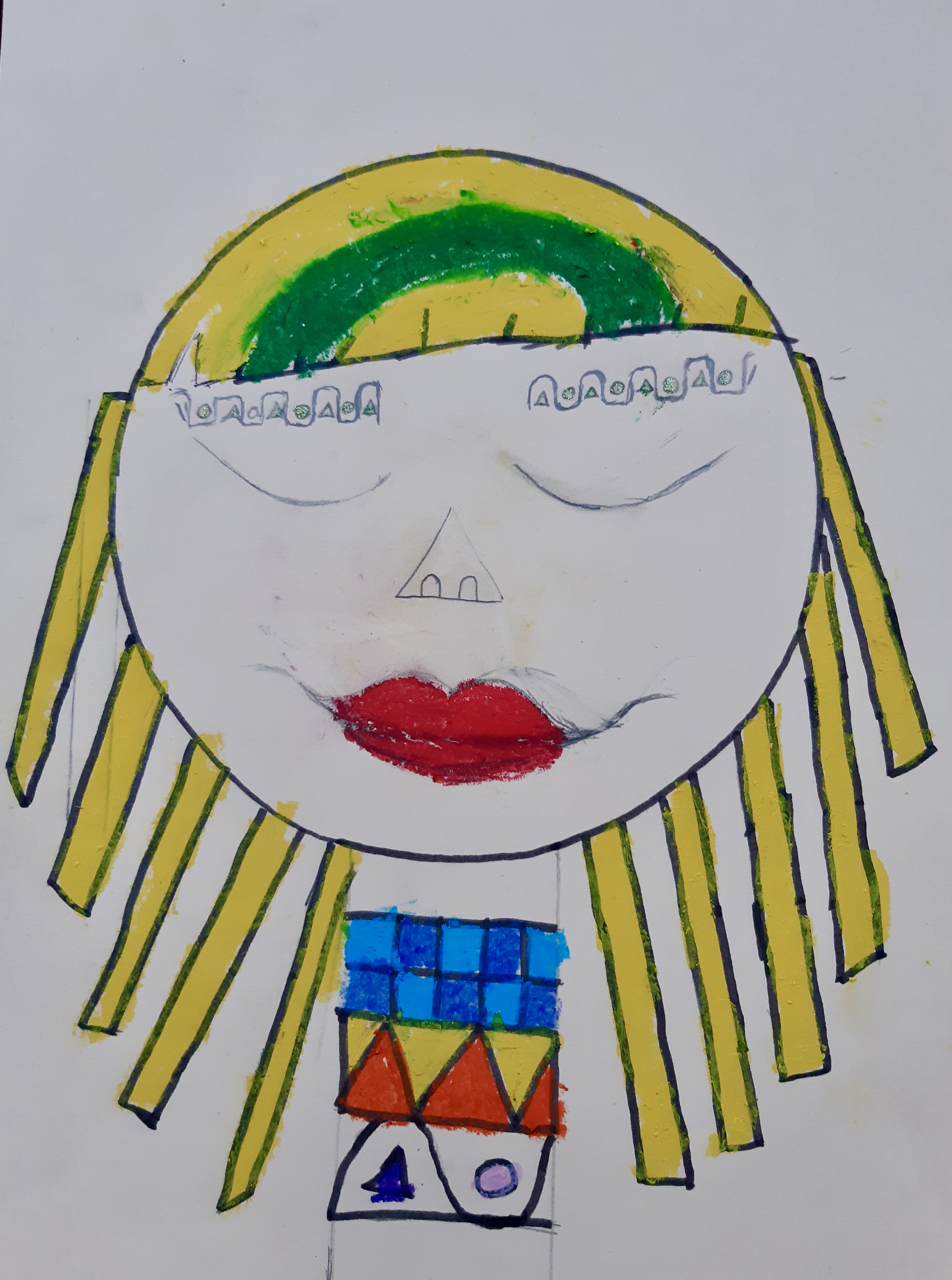 "Porträts mit geometrischen Formen und warmen Farben - nach dem Bild "Senecio" von Paul Klee"